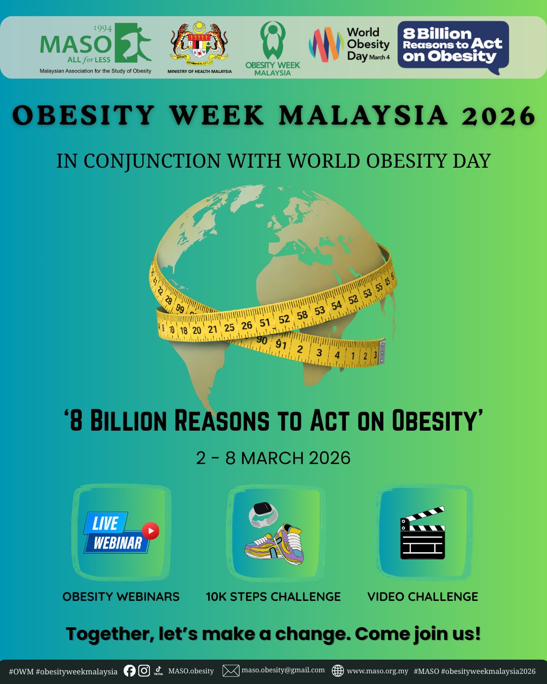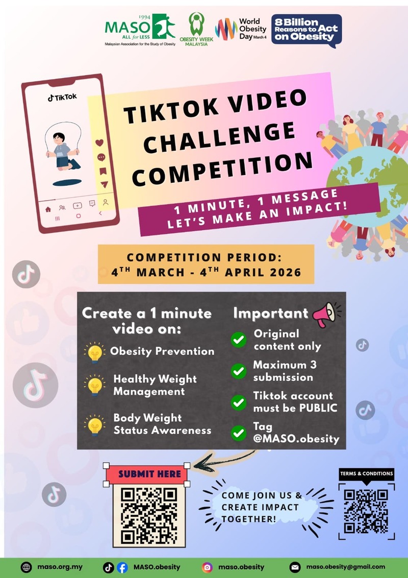 MASO is thrilled to announce our activities for Obesity Week Malaysia 2026 in conjunction with World Obesity Day! Save the date and join us in making Obesity Week Malaysia 2026 a celebration of wellness and healthy living!